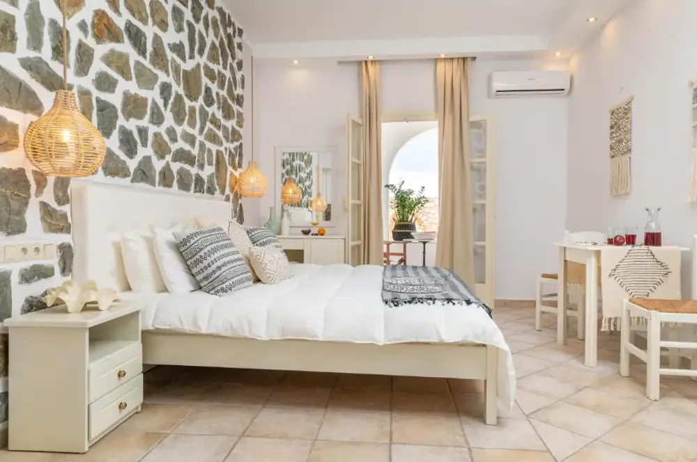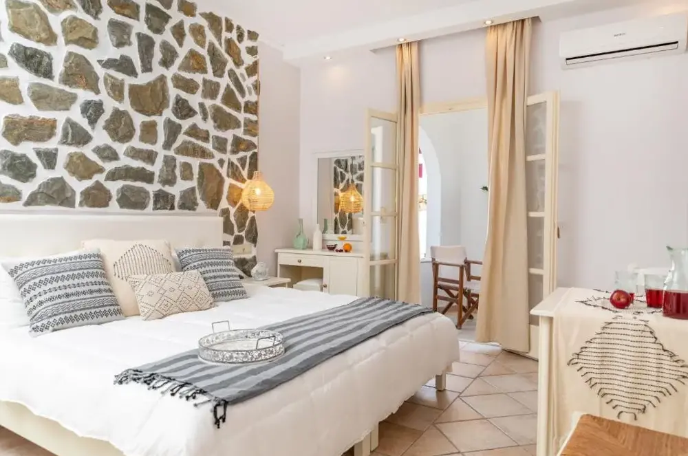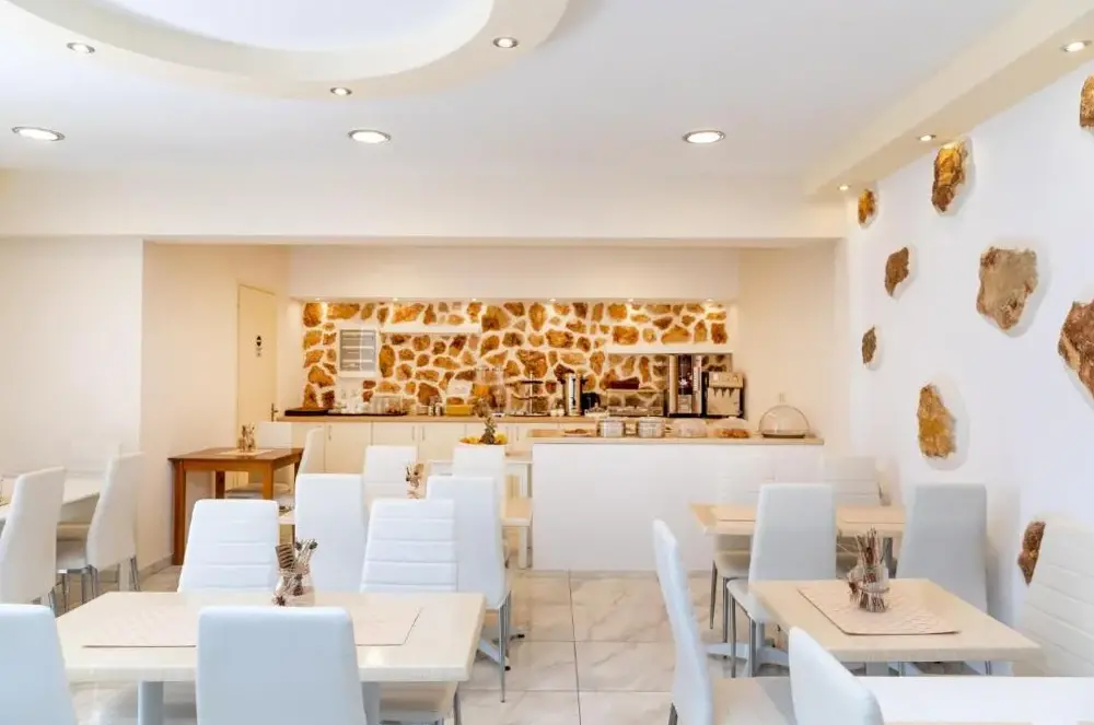 La estructura está a unos cientos de metros de las playas frente al mar y en las playas equipadas, rodeada de restaurantes, bares y algunas tiendas. Agios Prokopios está 10 minutos en automóvil de Chora, el país principal de Naxos. La habitación era muy bonita con un balcón con vista al mar. Limpio. Personal muy amable y servicial. Sin continuidad está Agios Anna, con varios restaurantes en la playa.